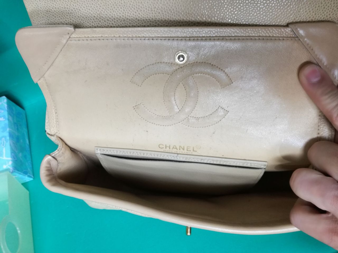 CHANELのバックよくあるのが、中袋がベタベタ