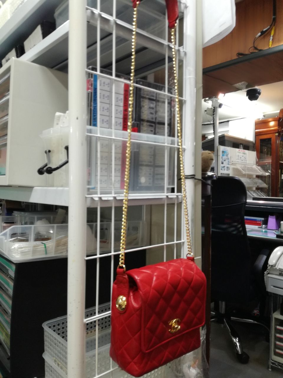 こんな感じです~✨ 肩のところに痛くないように 元から使われていた持ち手を利用して 皮作り&チェーンで いい感じになりました!