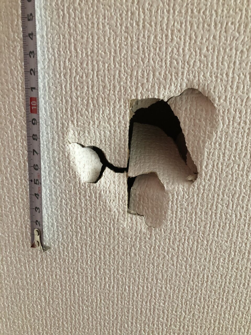 ☆ボードの穴の場合 そのまま何も触らずクロスが着いた状態で修理がおすすめです。